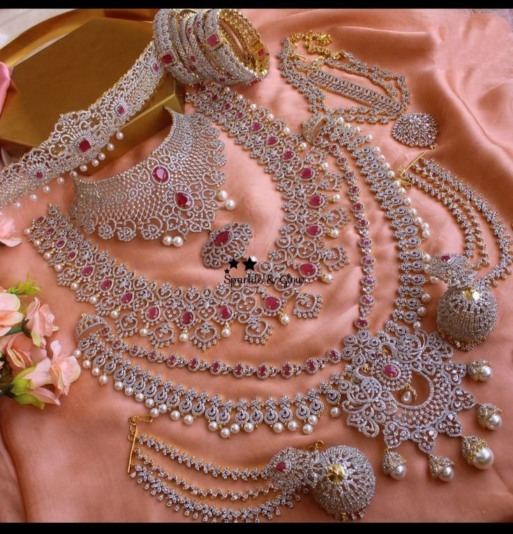 • Crafted with intricate details, the Sukanya necklace set is a stunning addition to any jewelry collection. Made with high-quality gold and sparkling diamonds, this set exudes luxury and elegance. Perfect for special occasions or gifting, it is a timeless investment that will elevate any outfit.